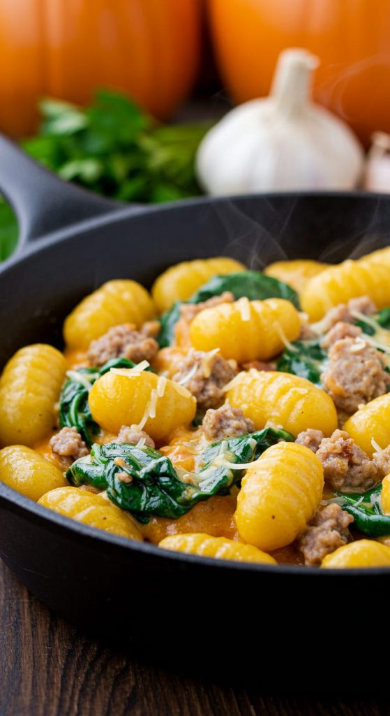 This pumpkin gnocchi with sausage and spinach is your best answer for those chilly evenings and fall appetites.