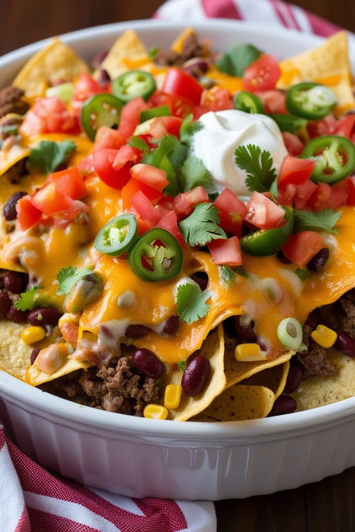 The contrasting elements—crispy corn chips, savory protein, fresh vegetables, and creamy sauces—create a harmonious experience that delights the senses and satisfies diverse cravings in a single, shareable dish.