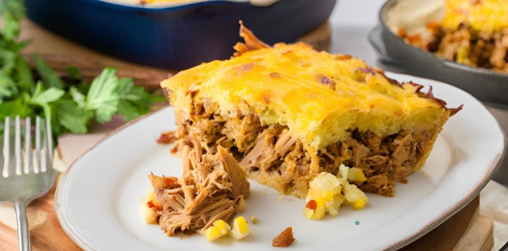 What makes this casserole truly special is its beautiful contrast of textures and flavors. The succulent pulled pork, infused with barbecue sauce, creates a savory base that’s perfectly balanced by the slightly sweet, crumbly cornbread topping.